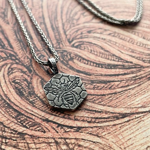SV925 Honeybee & Four-Leaf Clover Etched Pendant / シルバー製 蜜蜂と四つ葉のクローバーのエッチングペンダント