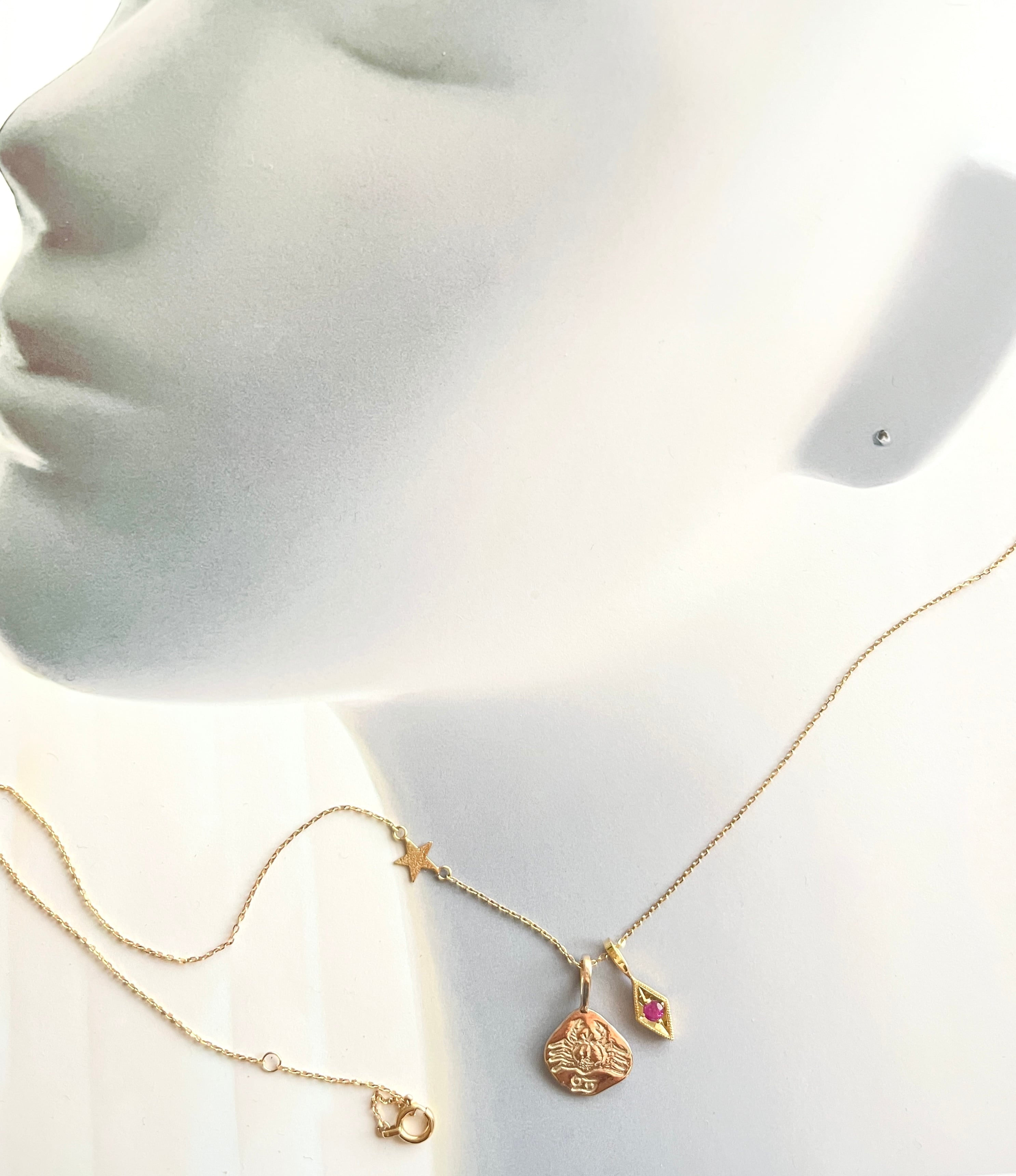 K18 Diamond Shaped Charm /18金製 ダイヤ型チャーム・ルビー