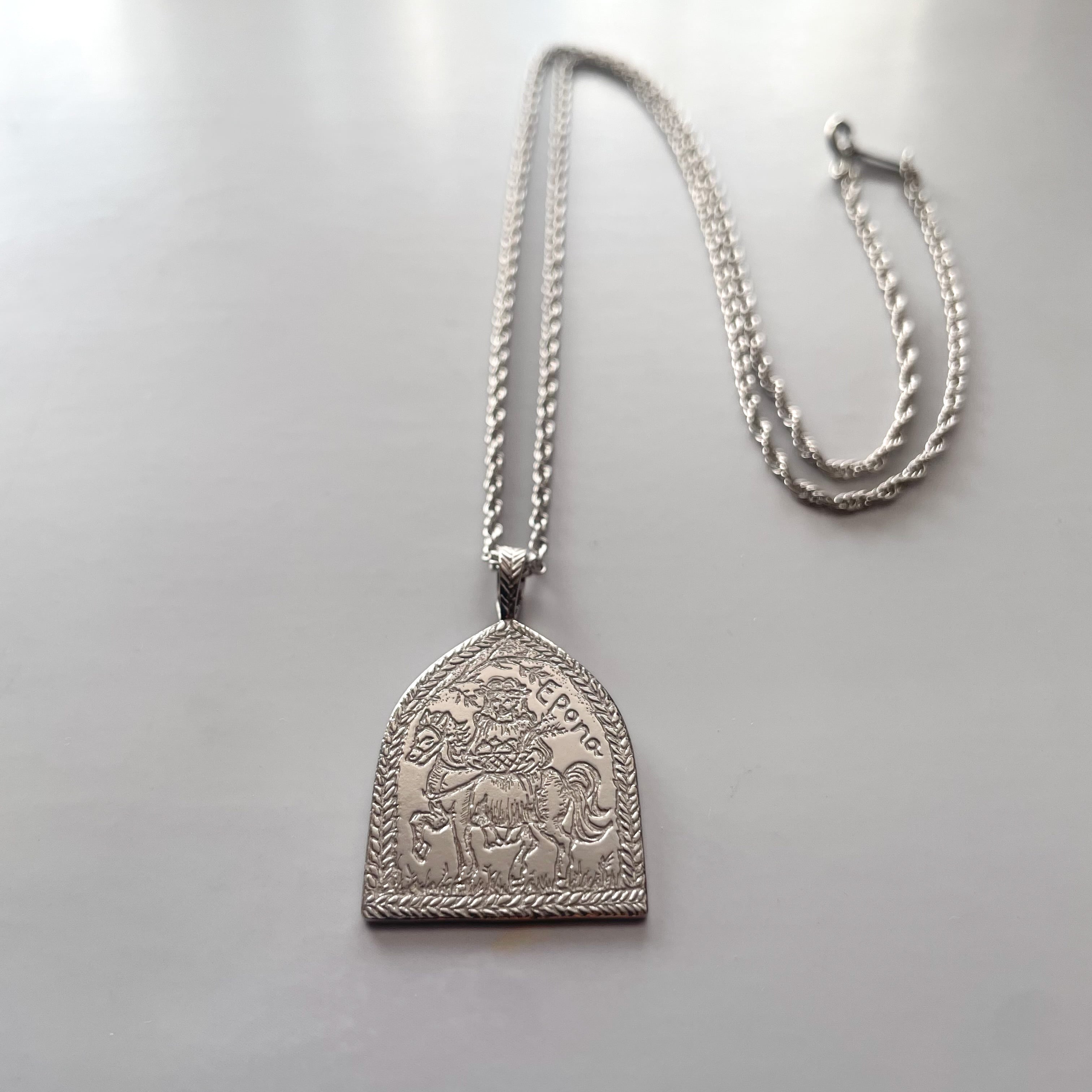 An antique-style pendant inspired by Epona, the horse goddess from Celtic mythology.