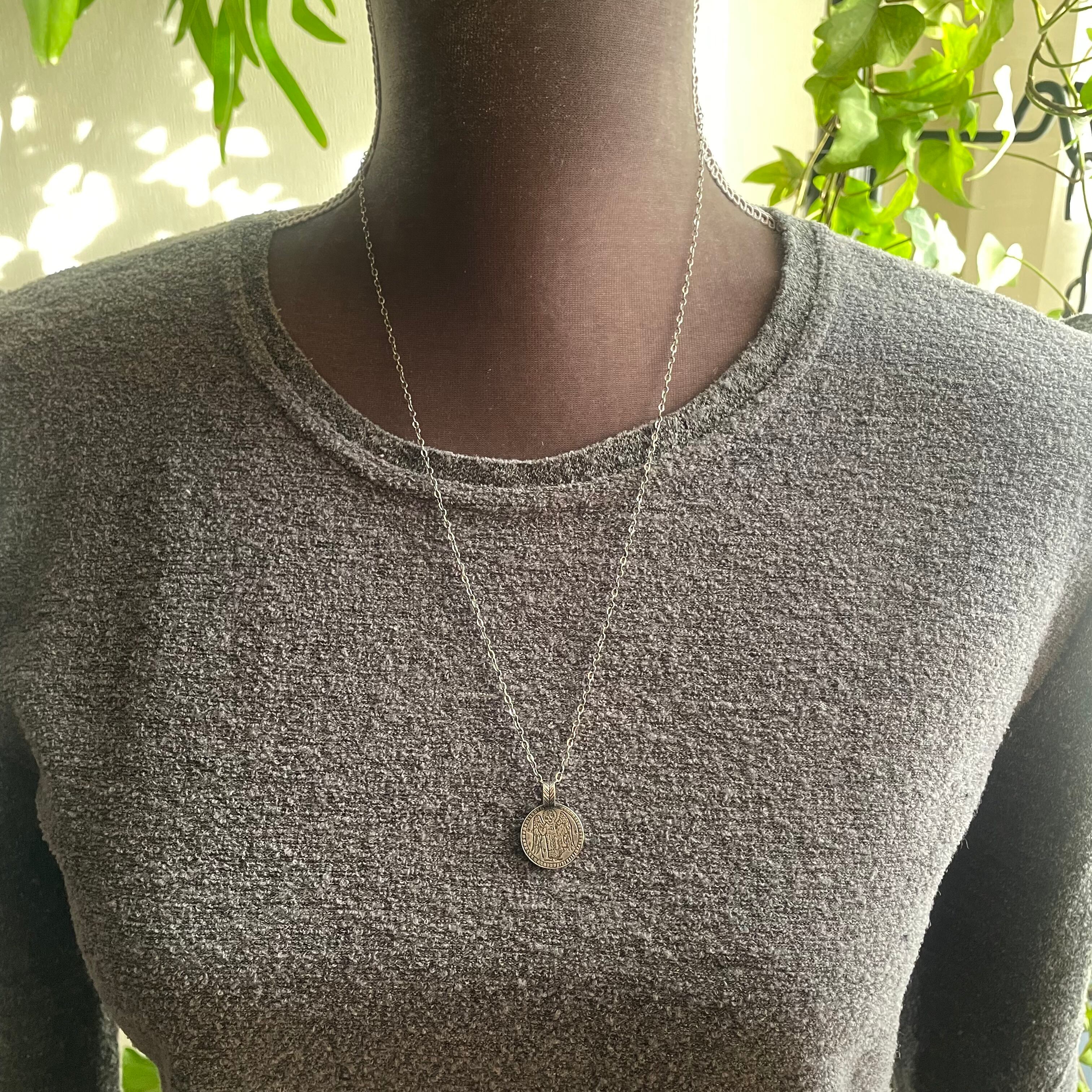 何にでも合わせやすい、プレーンタイプのコインネックレス。