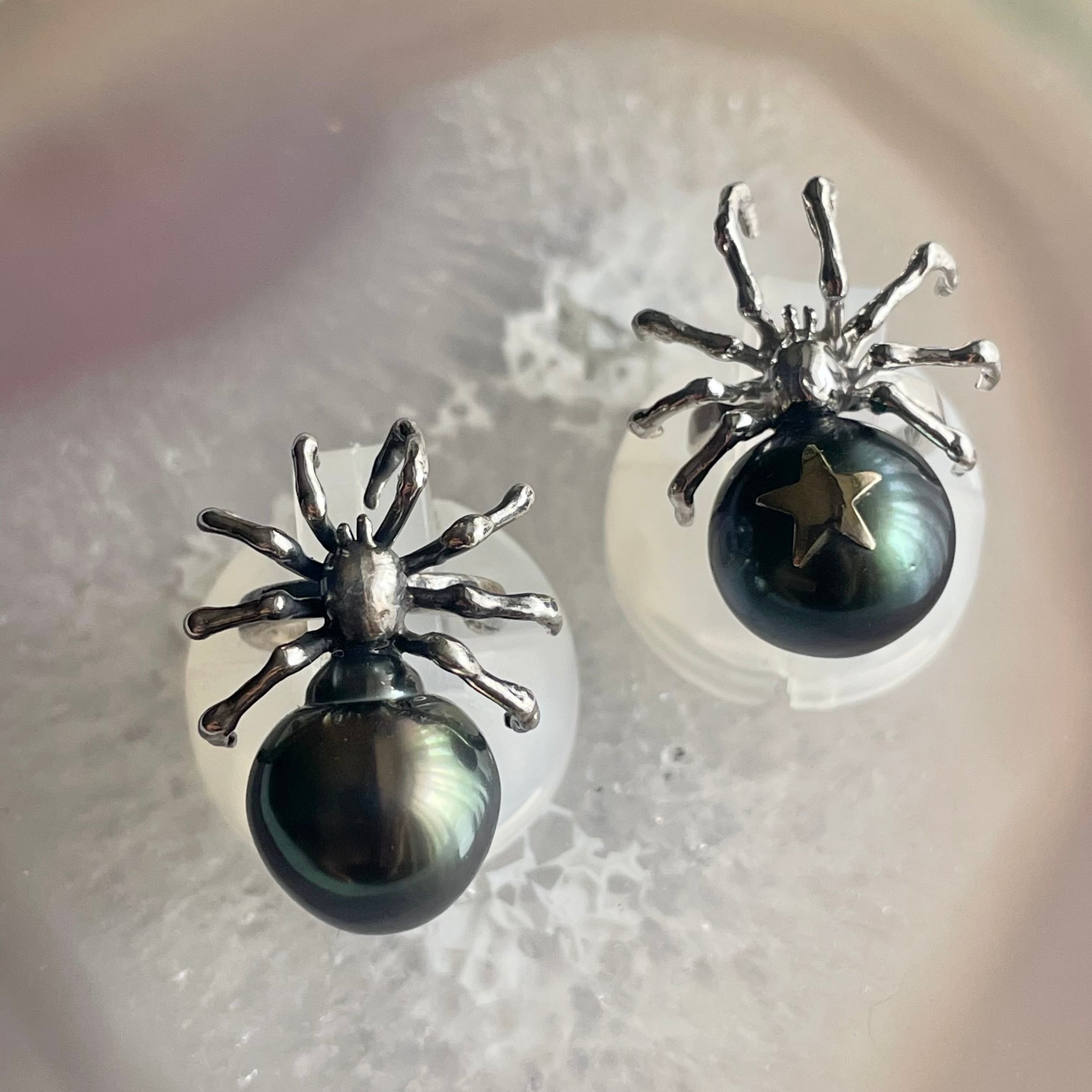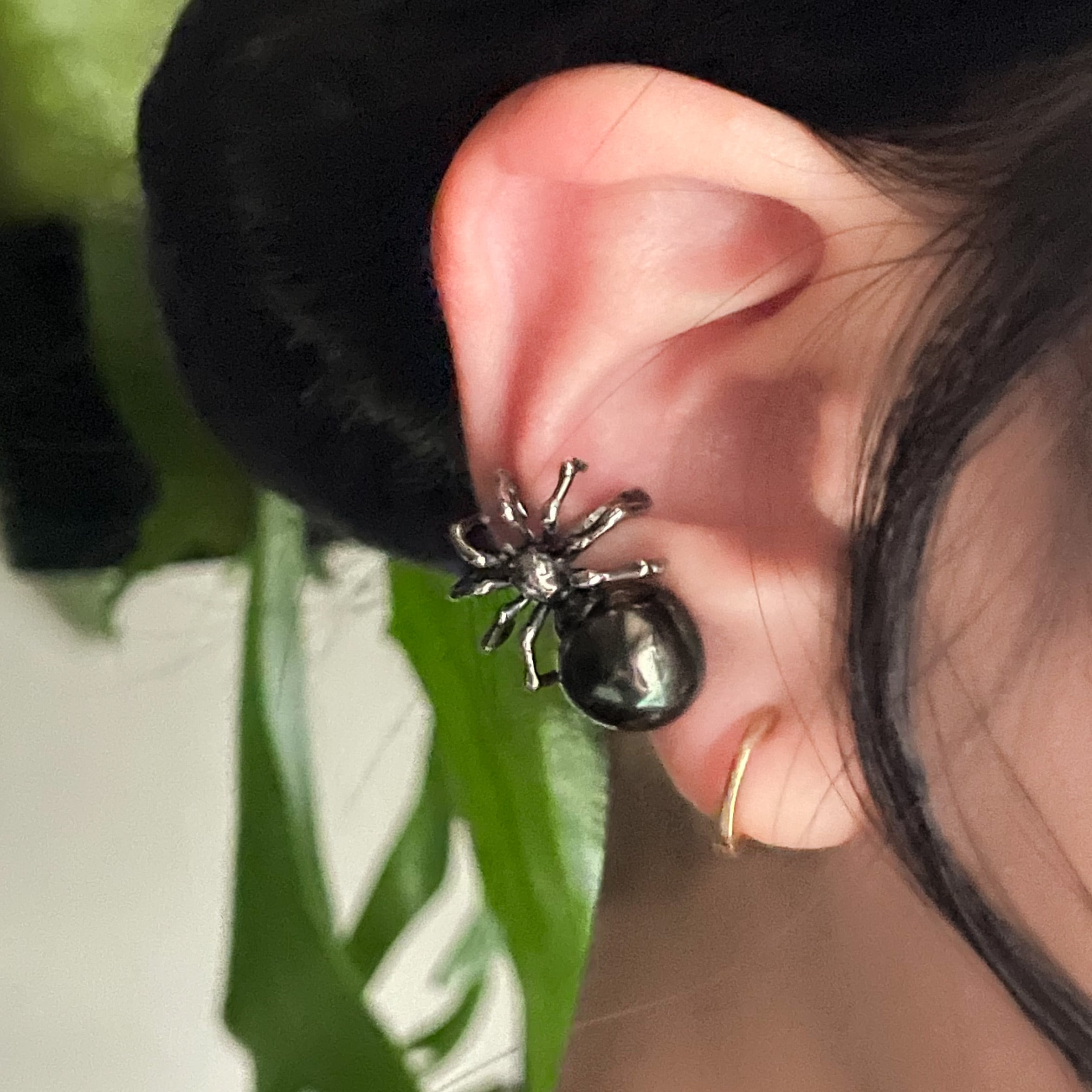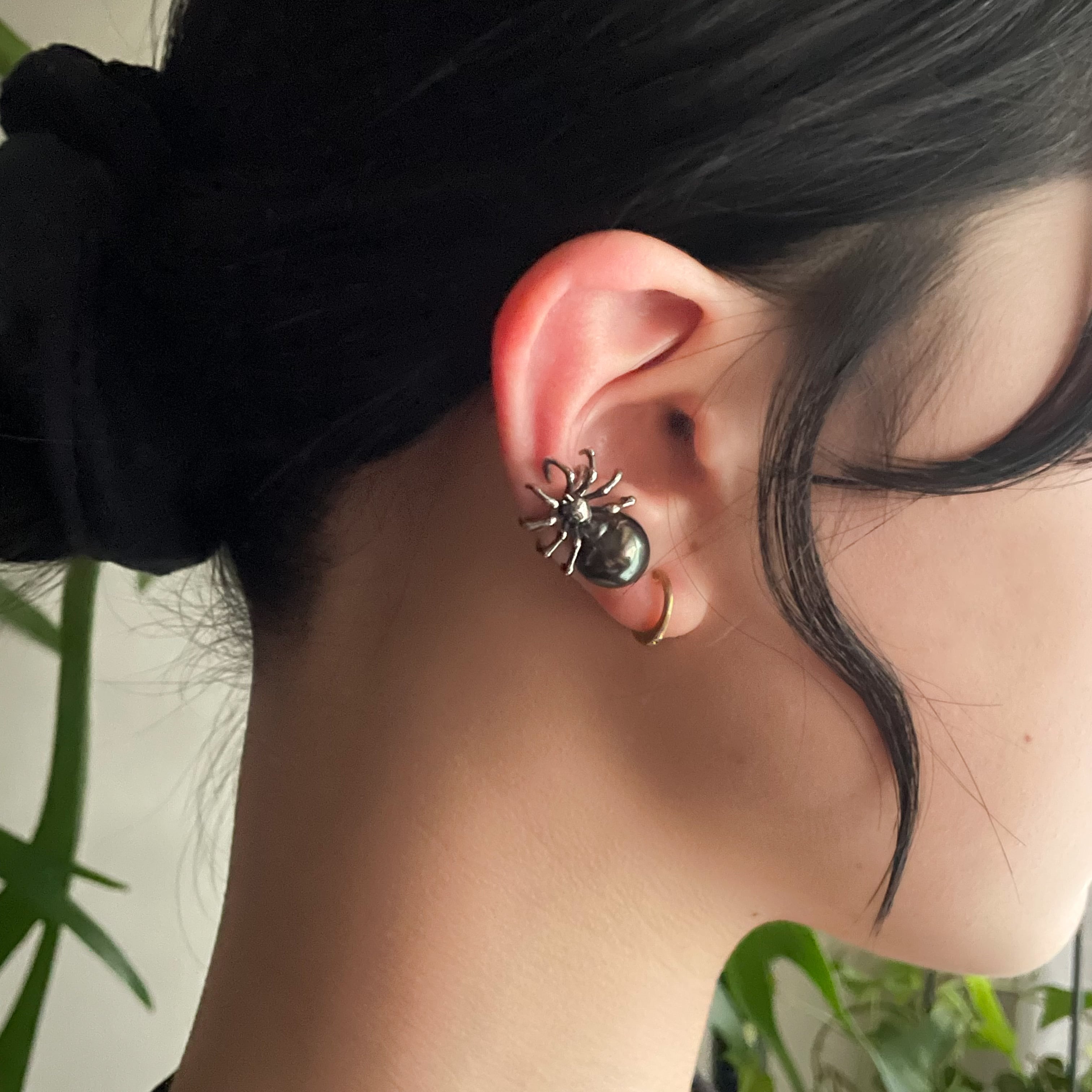 『Spider Ear Cuff - Black South Sea Baroque Pearl ( 蜘蛛のイヤーカフ・黒蝶真珠バロック)』
