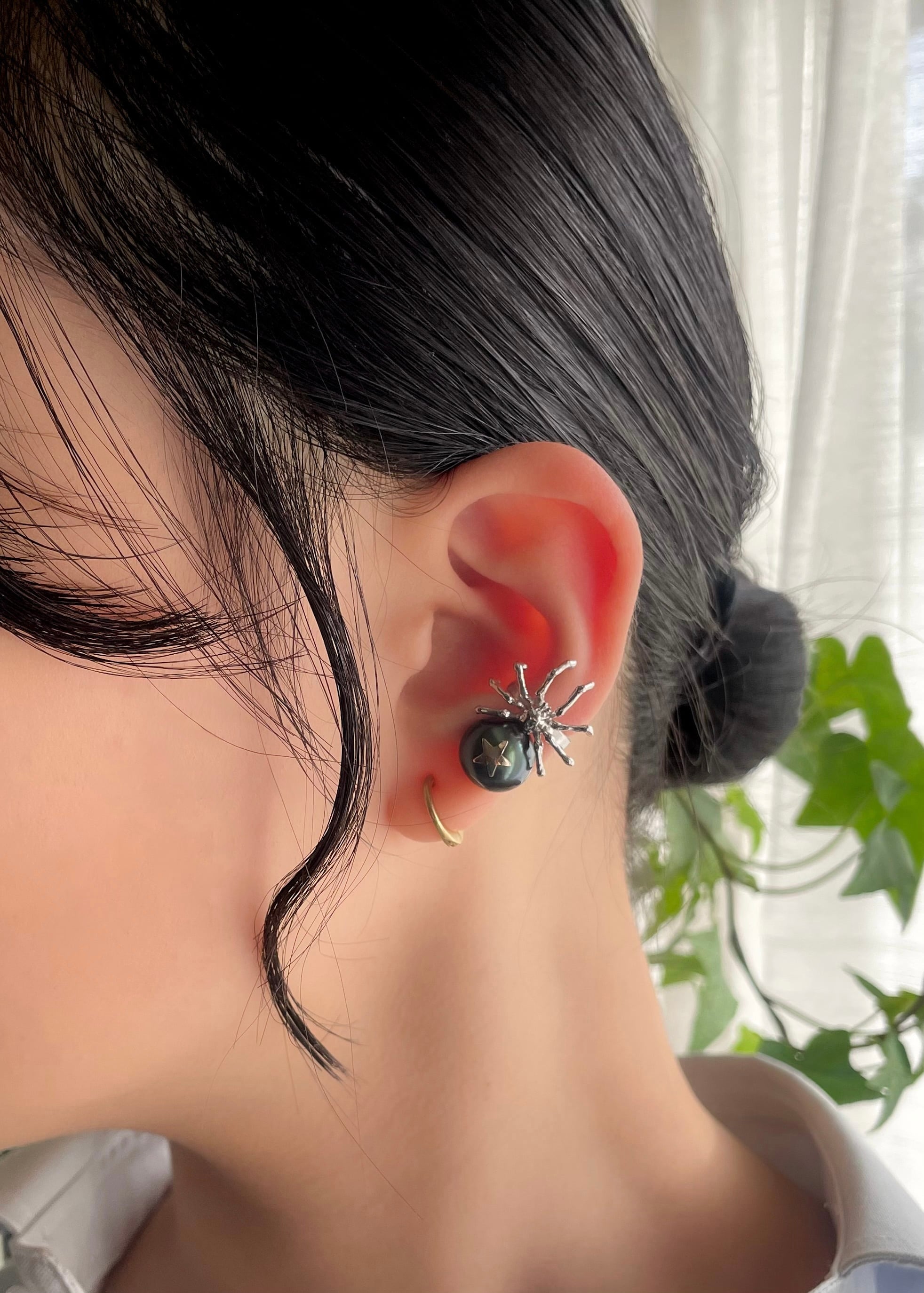 『Spider Ear Cuff - Black South Sea Pearl ★ ( 蜘蛛のイヤーカフ・黒蝶真珠、星付き)』