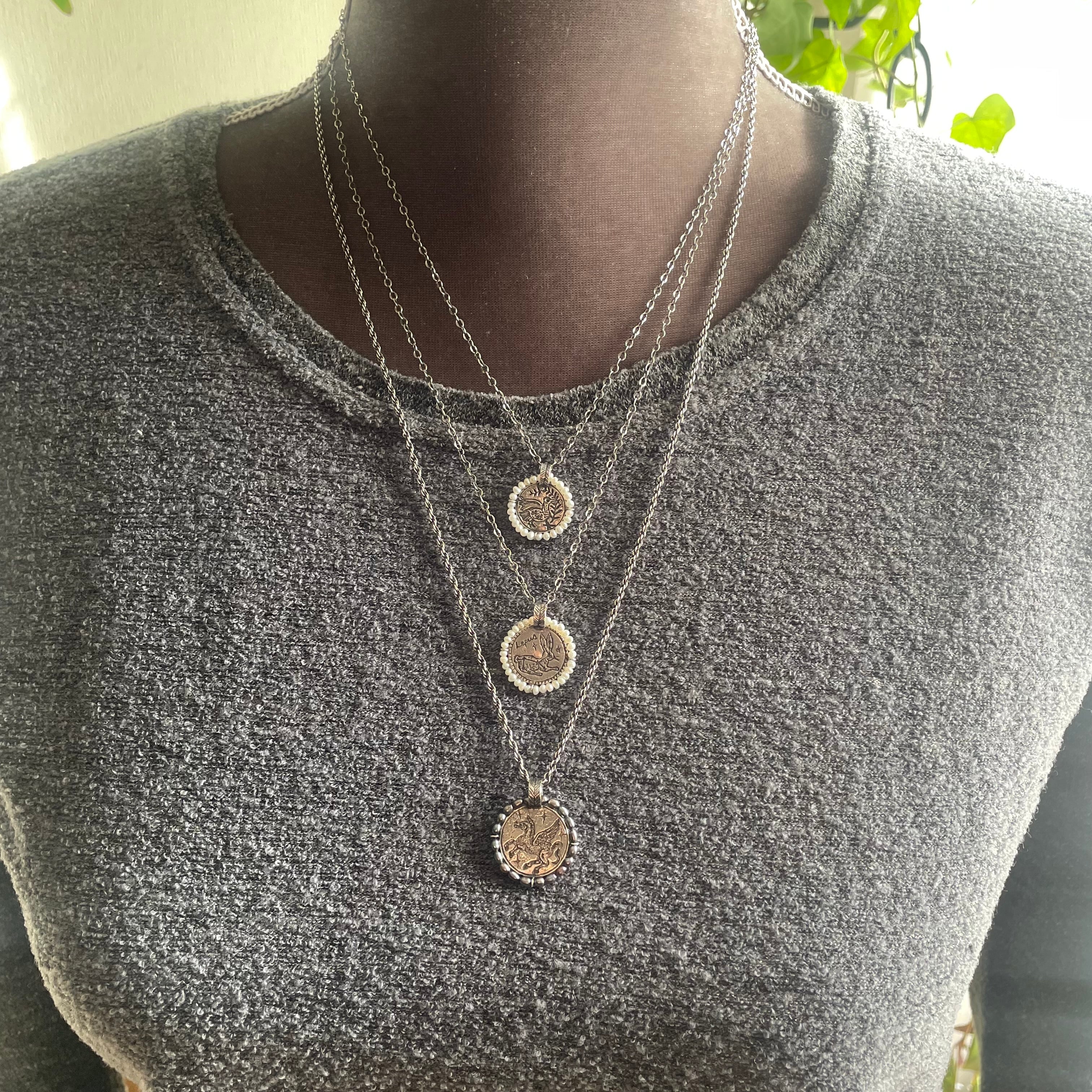 The technique of surrounding the coin with pearls or natural stones is inspired by the icons