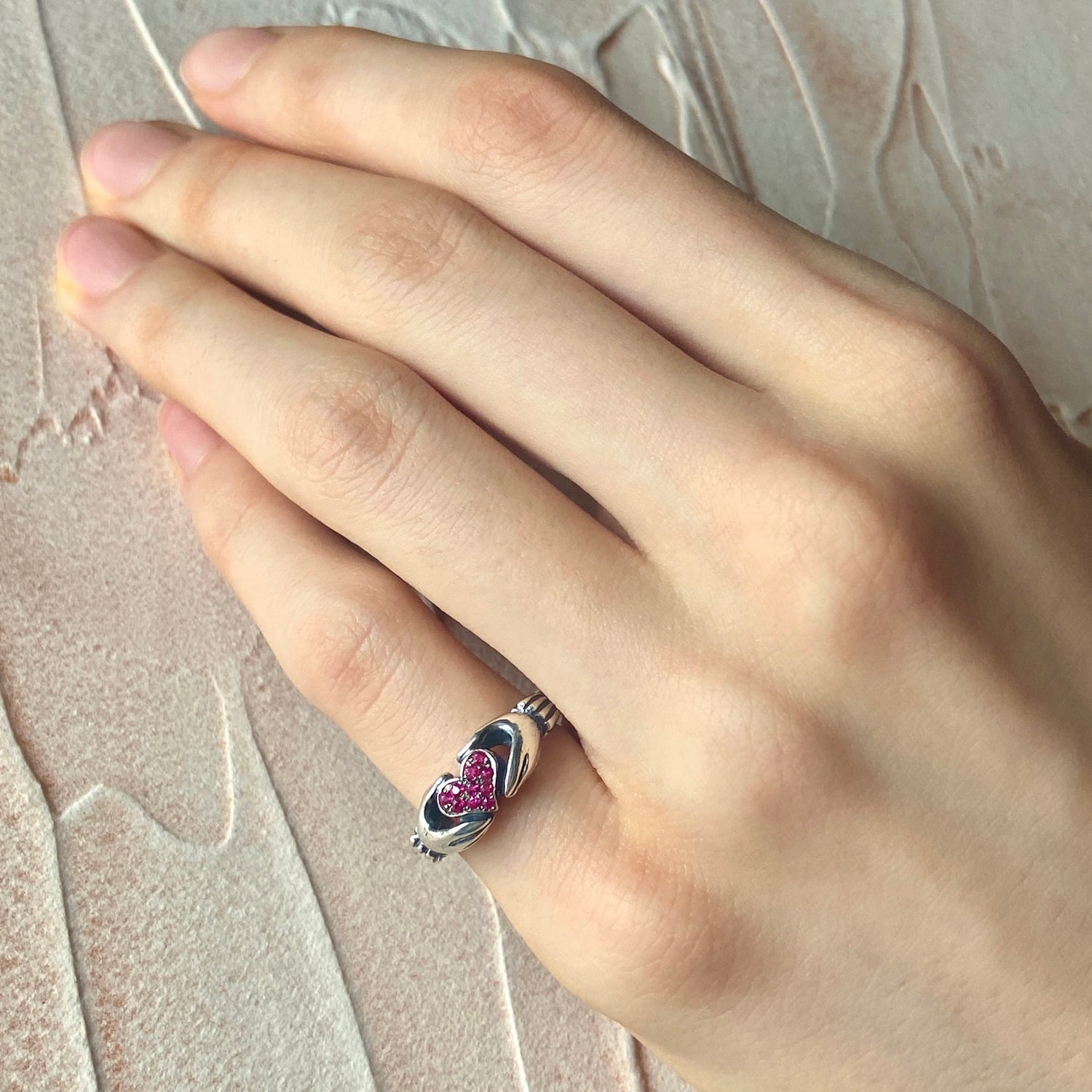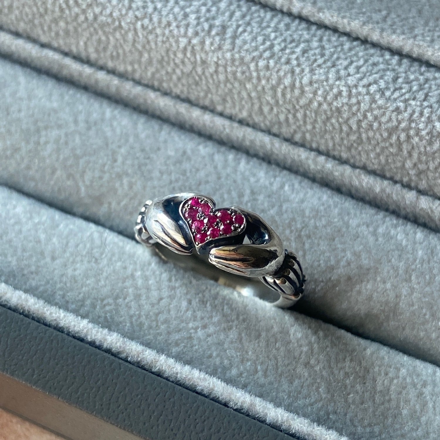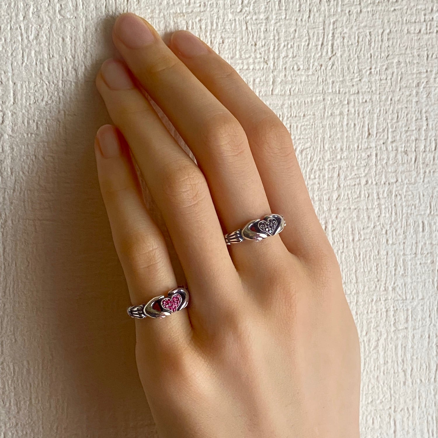 『Silver925 ハートを抱(いだ)く手のリング・ルビー(3号 8.5号)』