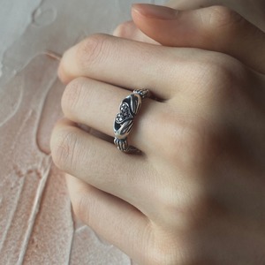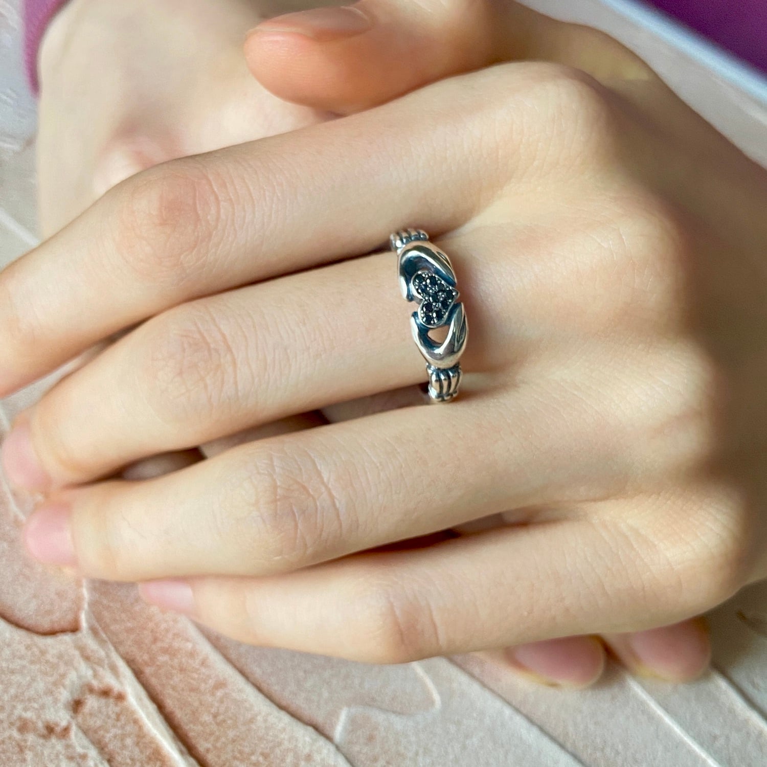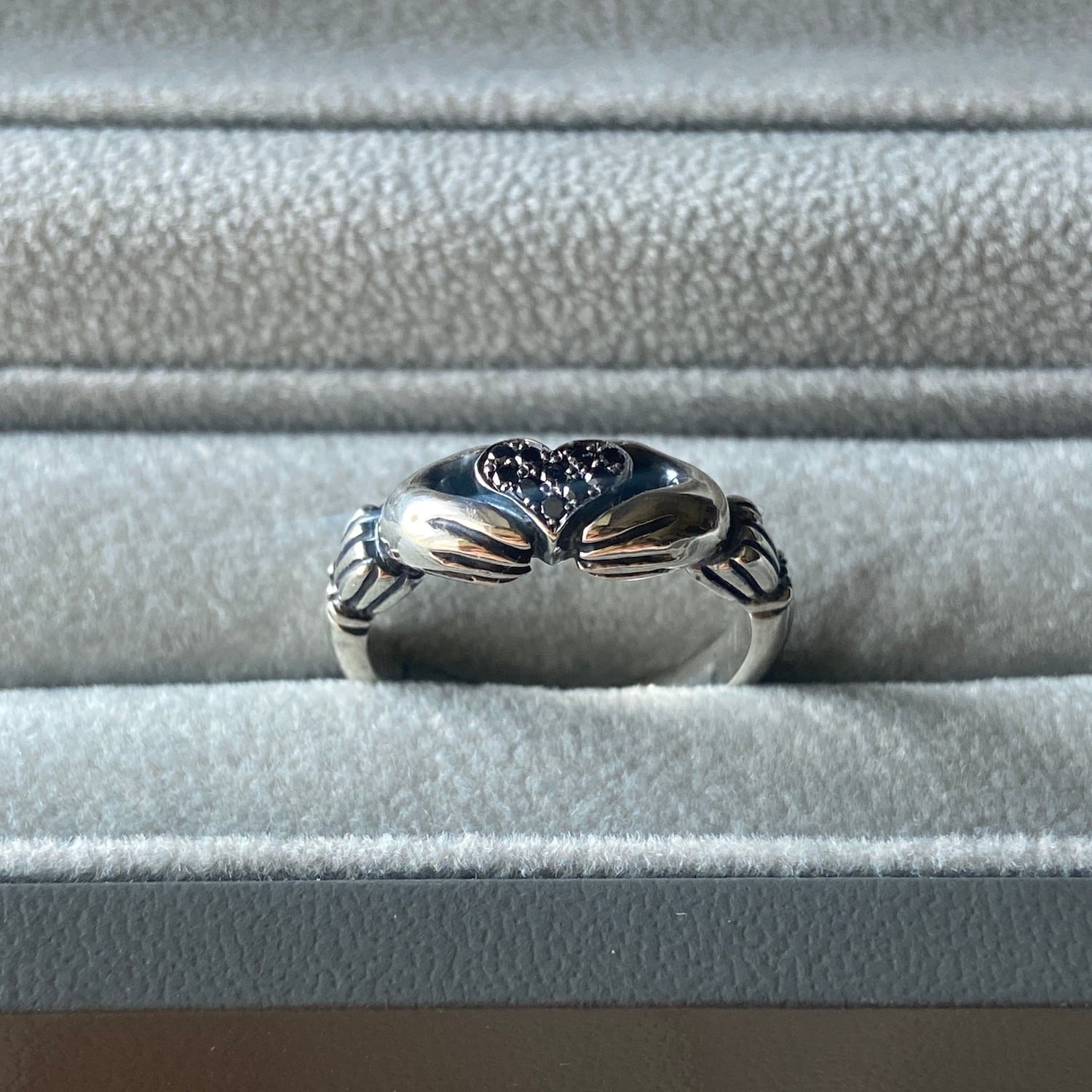 Silver925 ハートを抱く手のリング・ブラックダイヤ(3号 12号)