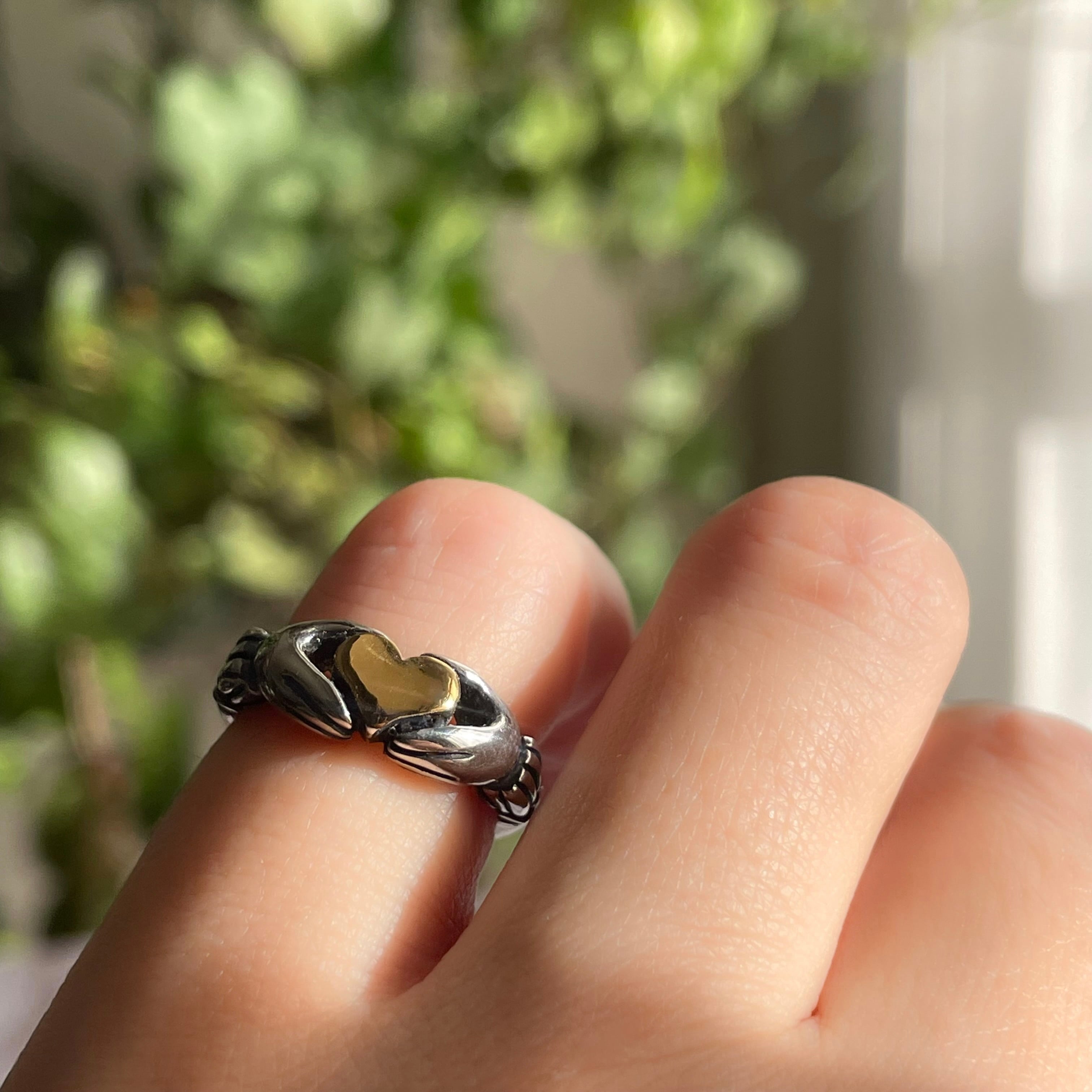 Sterling Silver Hand-Holding-a-Heart Ring (Gold-Tone Heart) / Silver925 ハートを抱く手のリング(金色のハート)