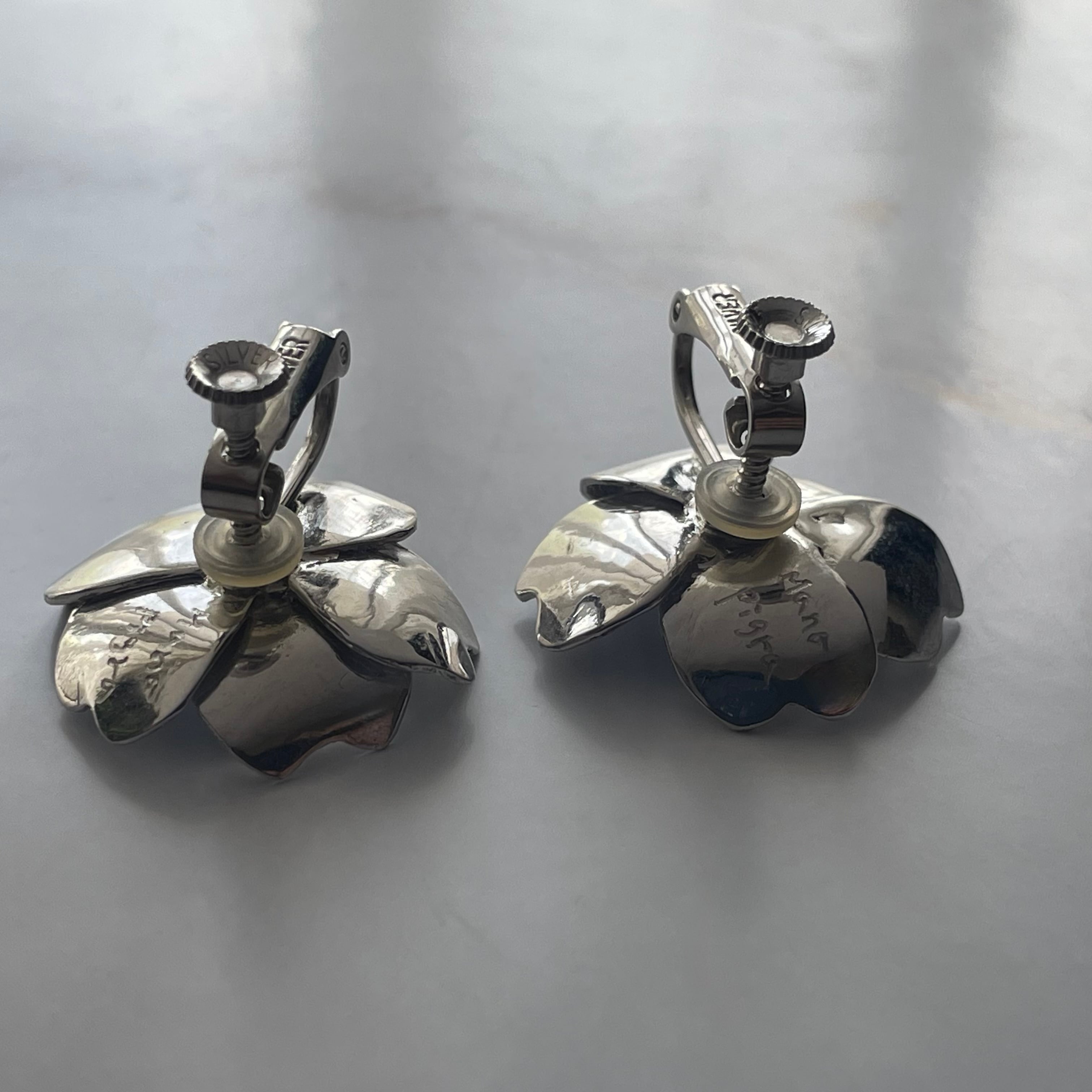*こちらはシルバーにロジウムメッキ加工のイヤリングです。ピアスは別ページよりご覧ください。