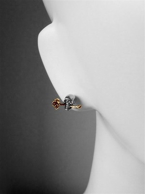 この魅力的なモチーフの組合わせを、立体的で精巧な作りに落とし込んだ個性的な片ピアス。小ぶりで身に着け易いサイズながら、しっかりとした存在感を放ちます。