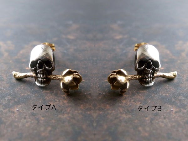 こちらの商品は片ピアスとなります。タイプA(髑髏の正面向かって右側に薔薇)、又はタイプB(髑髏の正面向かって左側に薔薇)をお選び下さい。ペアをご希望の際は2点(左右1点ずつ)をお選び下さい。