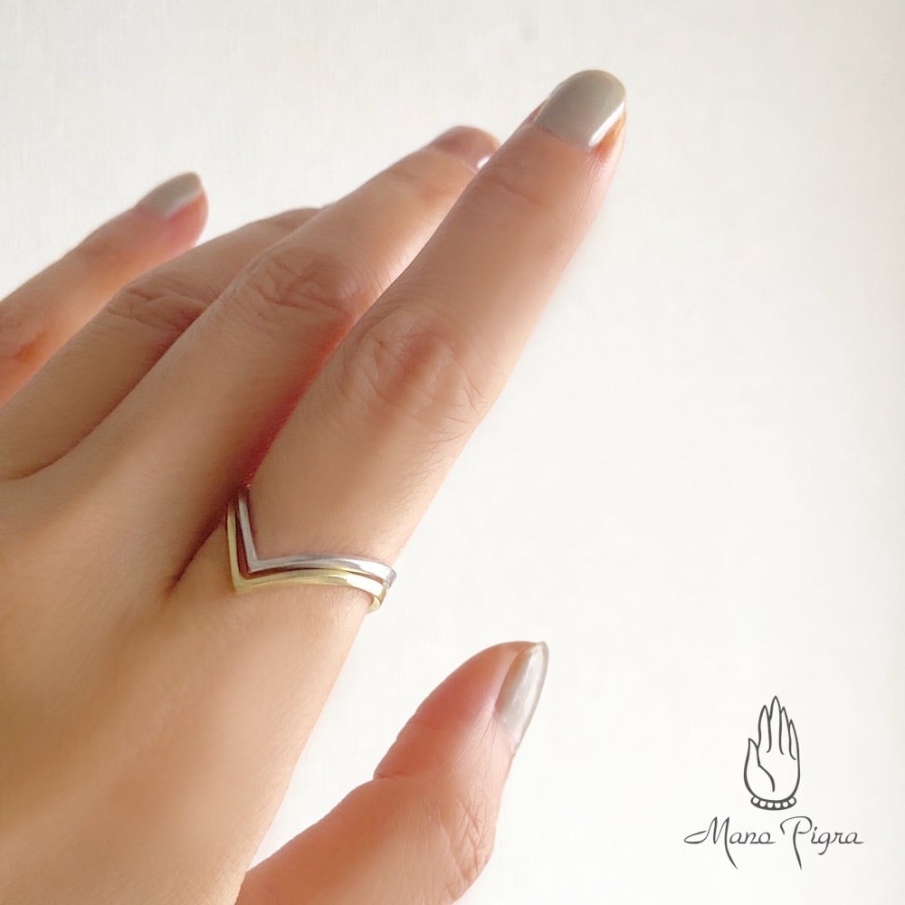 優美で美しいラインを描くV字リング。手指をほっそりと長く見せてくれます。