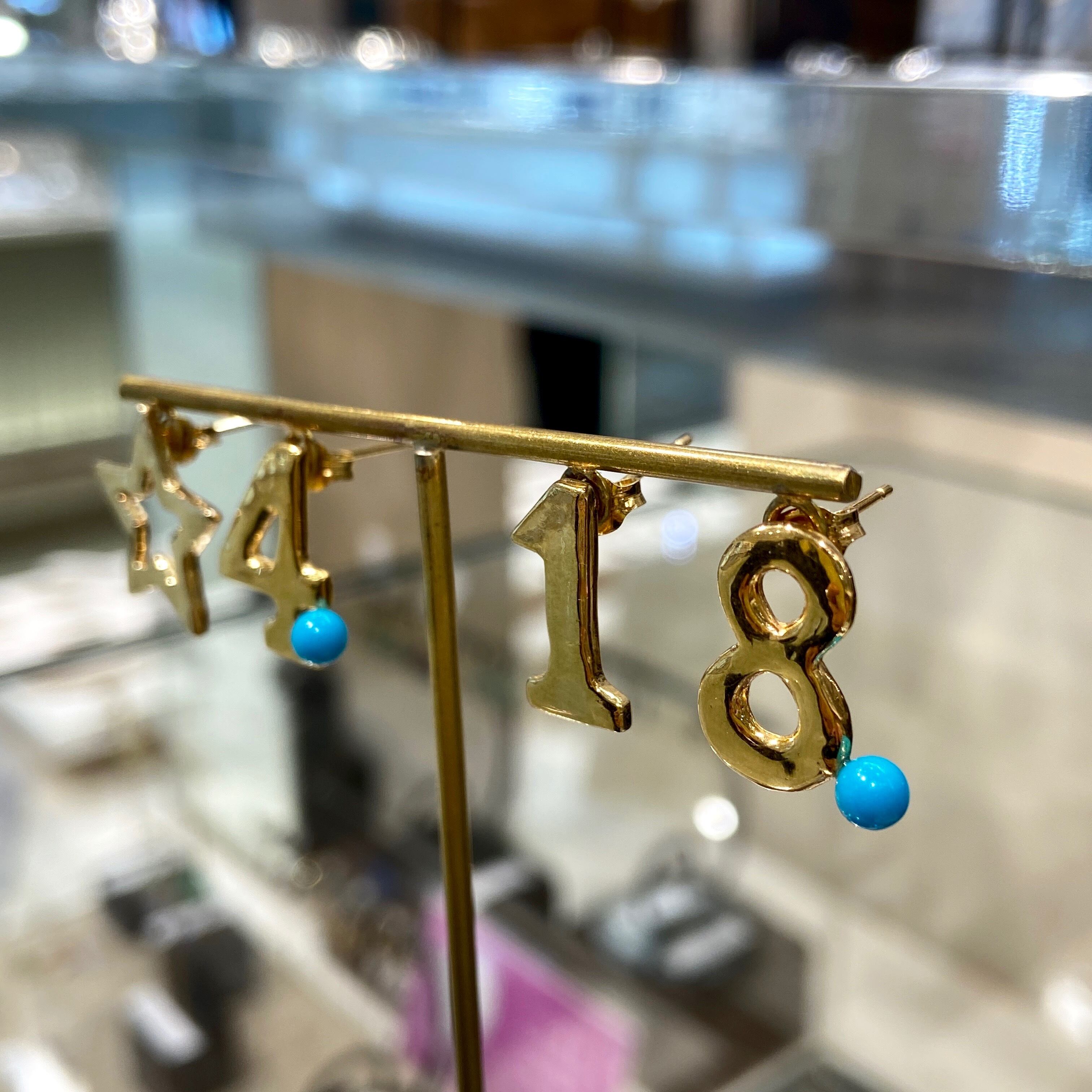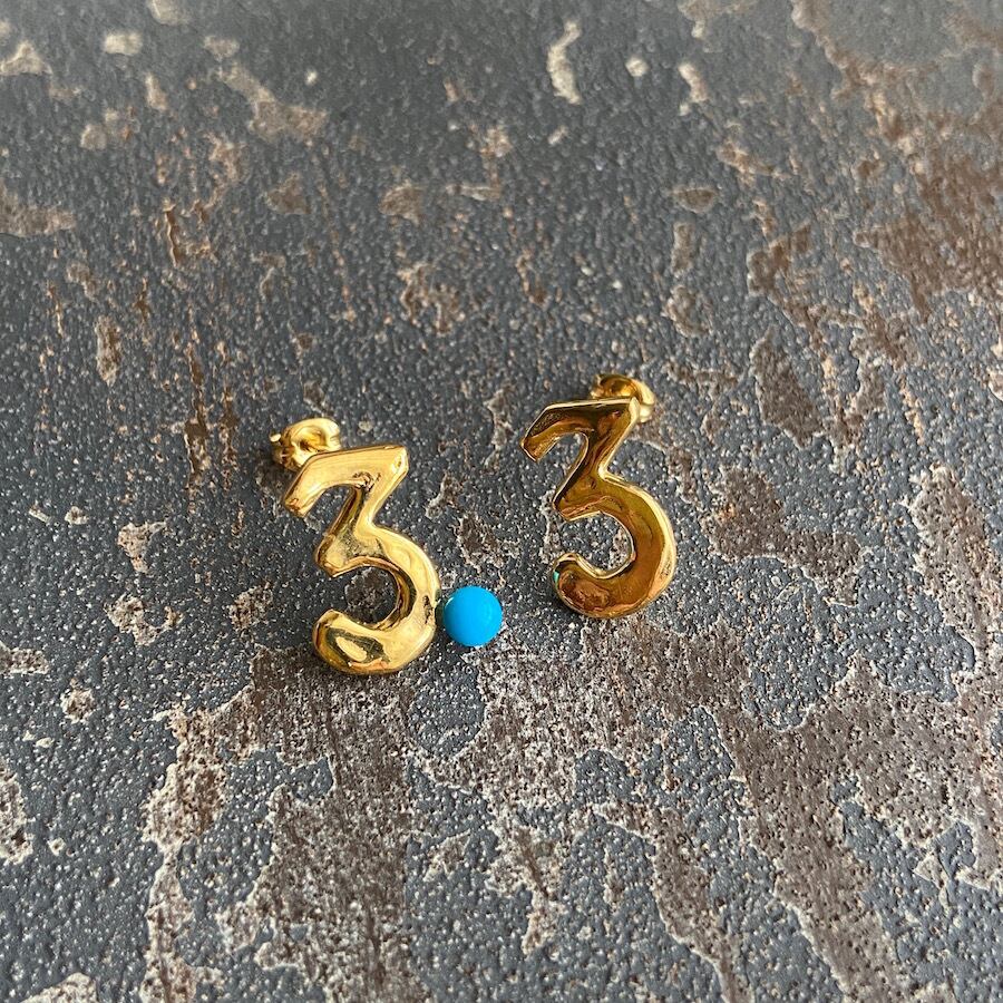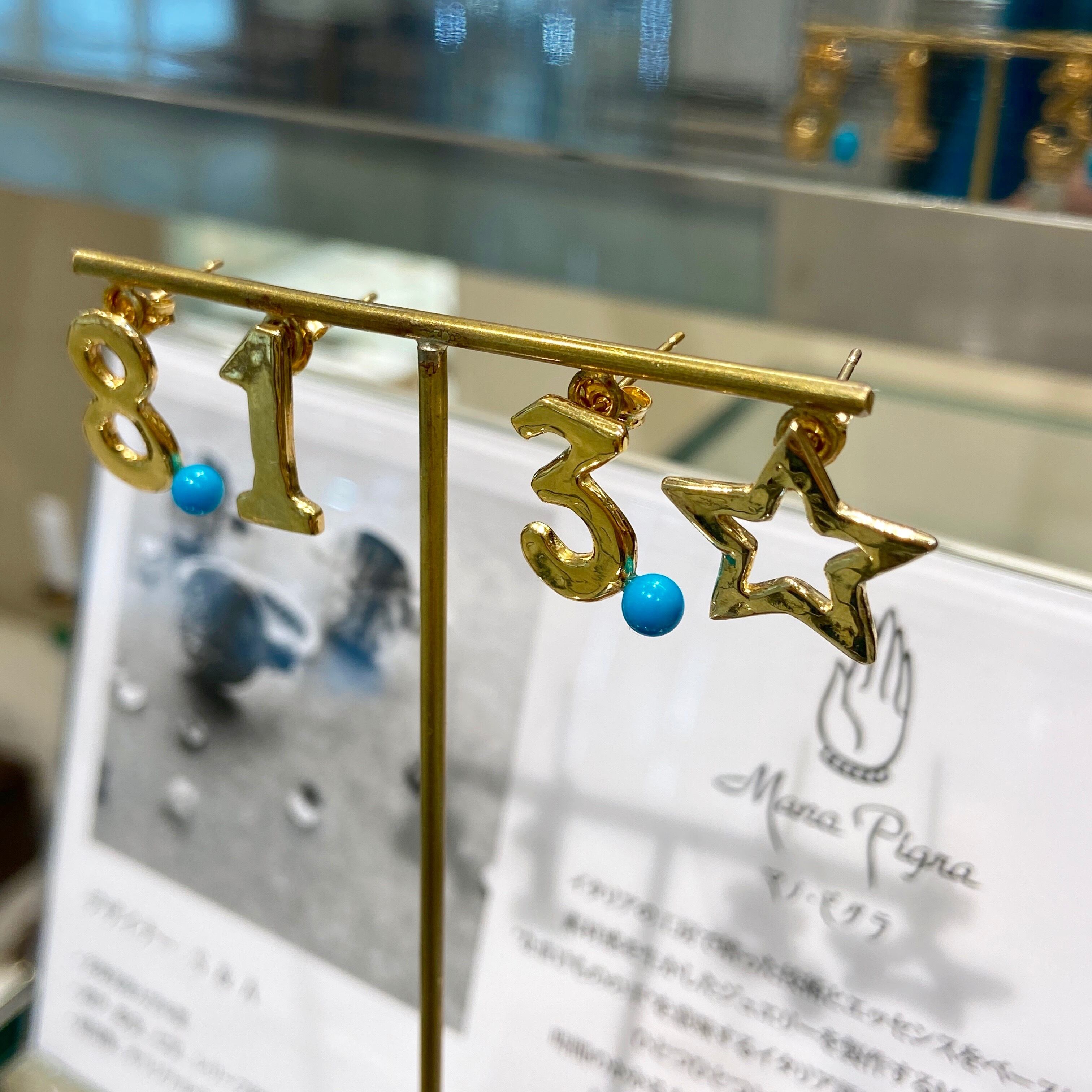 Numero & Star /数字と星のセットピアス&イヤリング・ターコイズ付き Sサイズ