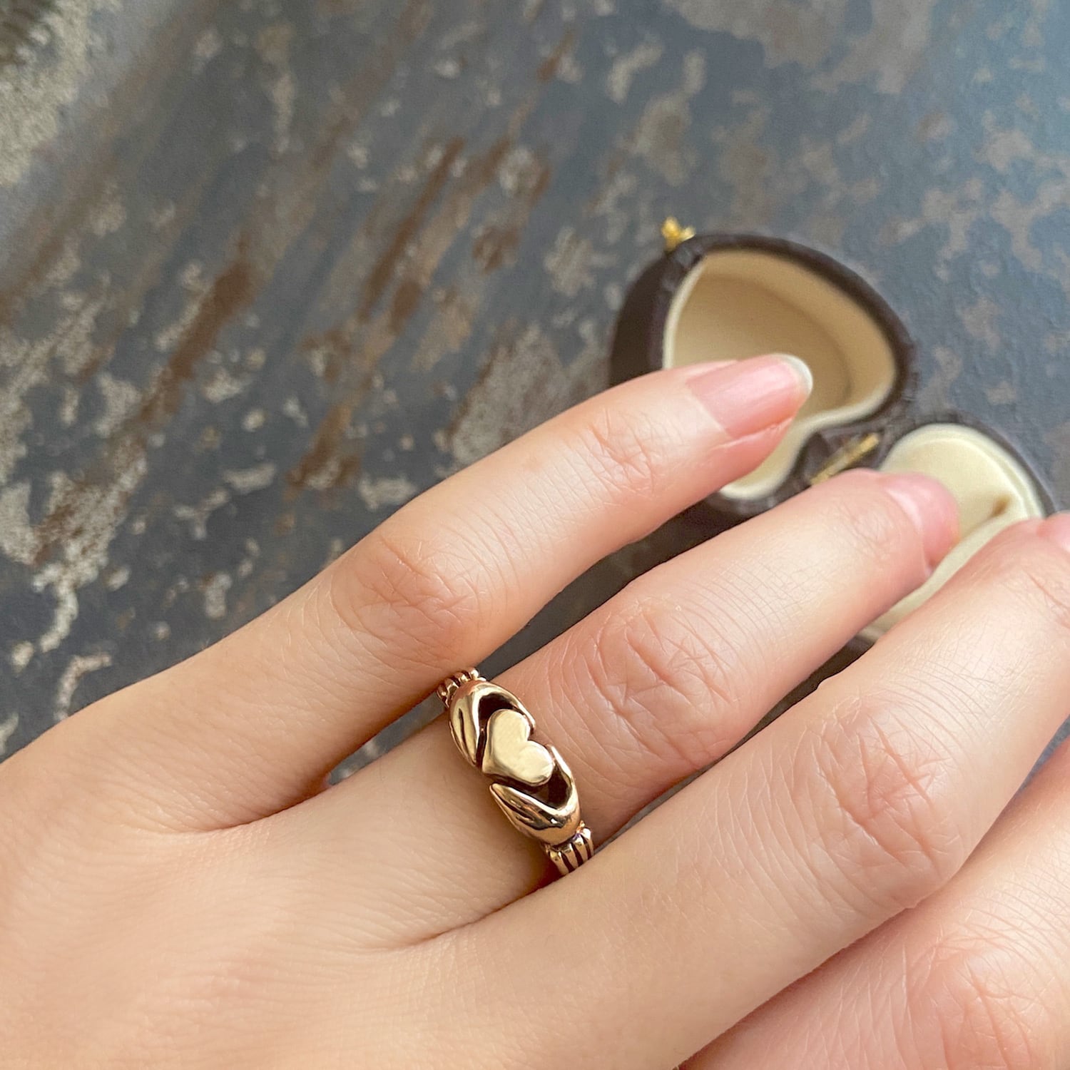 『10金製 ハートを抱(いだ)く手のリング・インタリオ』
