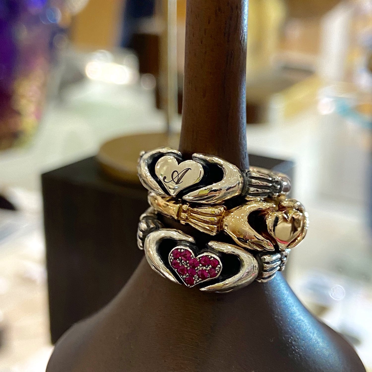 愛、信頼、誠実、友情を表す、お守りの様なメッセージリング。大切なものを慈しむ様に持った姿をイメージして、柔らかみのある優しく愛らしい手に、そっとハートを抱かせました。中央のハート部分には、お好きなアルファベットのインタリオ(彫り)をお入れするセミオーダーリングです。素材は10金製です。表面は燻し、趣のあるアンティークテイストに仕上げています。