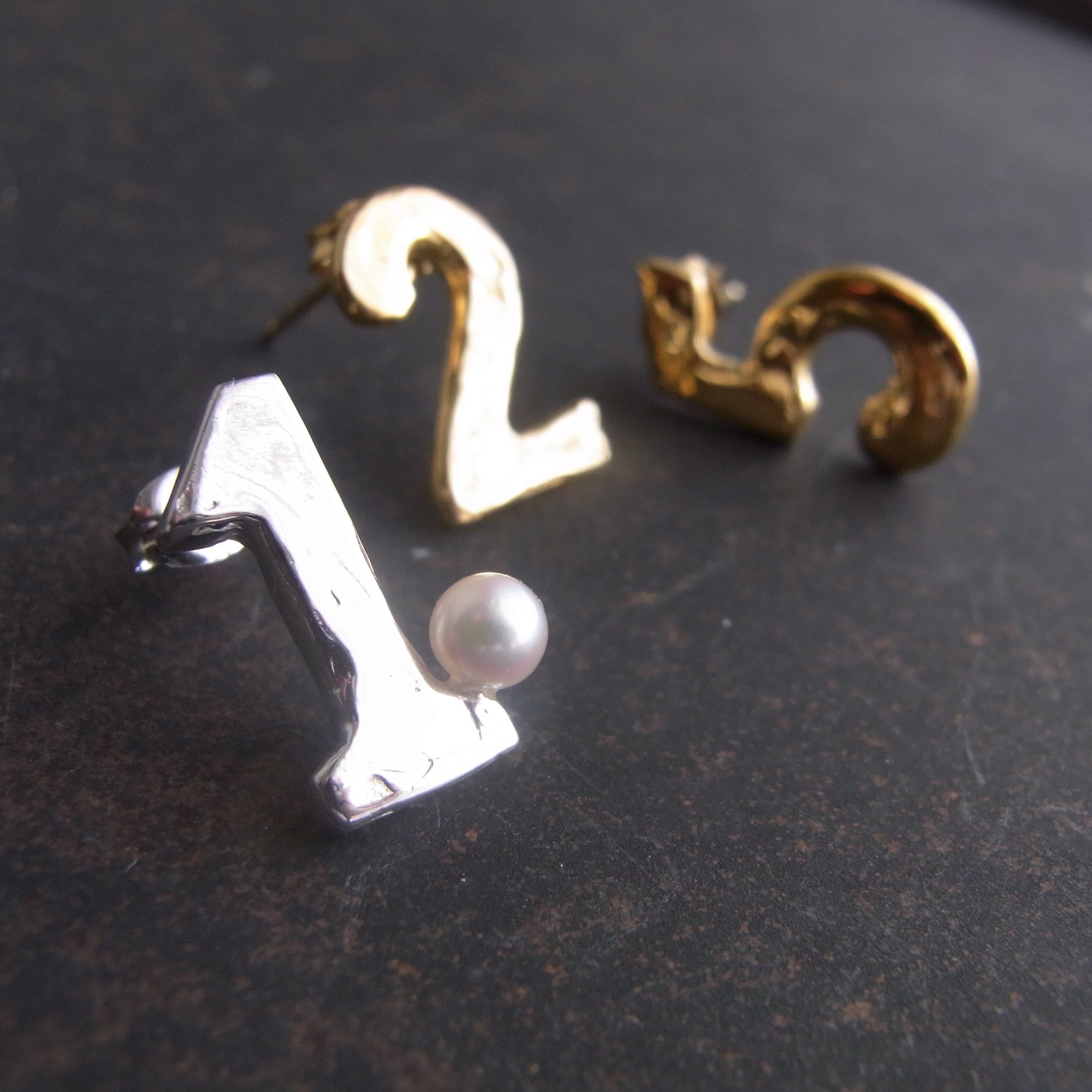 アコヤの本真珠がアクセントの片ピアス。0〜9のお好きな数字をお選び下さい。(星もお選び頂けます。)素材は地金SV925、カラーはゴールド(20金メッキ)、またはシルバー(ロジムメッキ)をお選び頂けます。