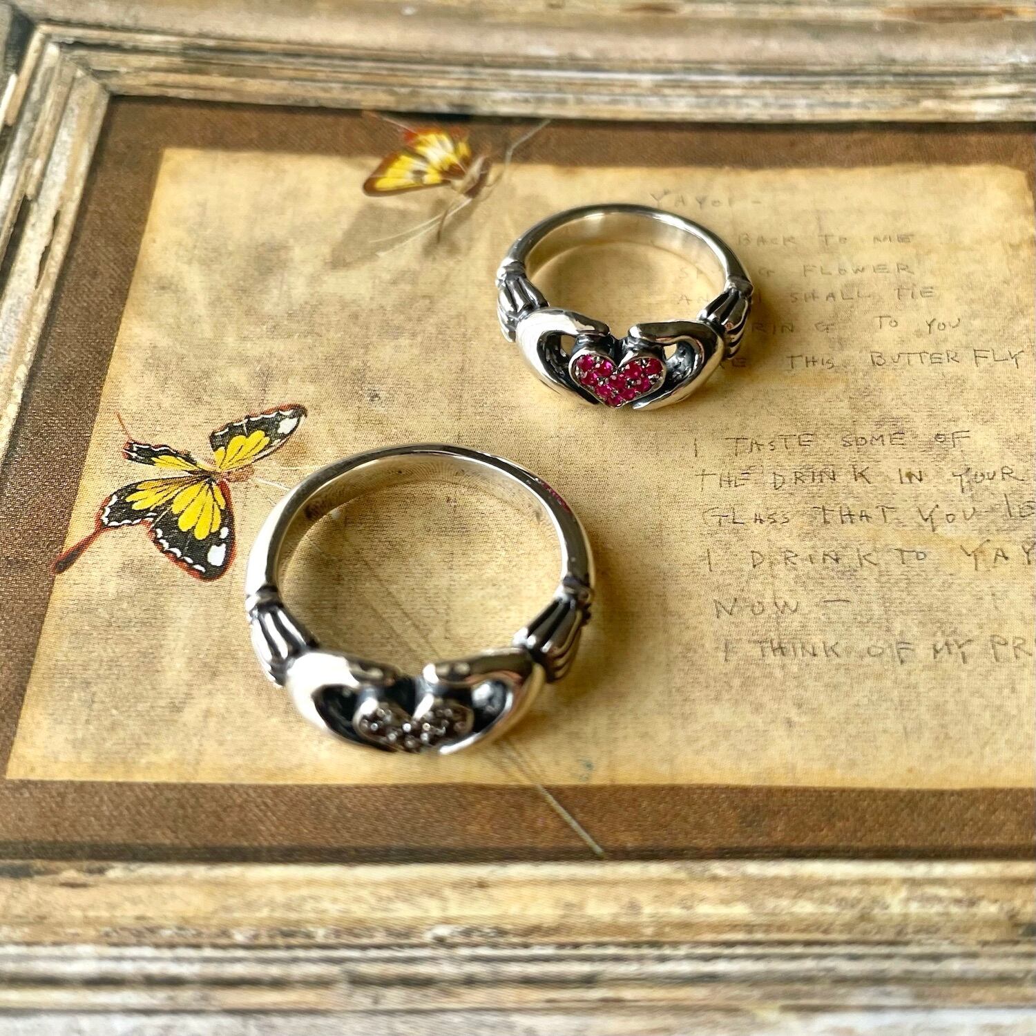 『Silver925 ハートを抱(いだ)く手のリング・ブラックダイヤ』本体価格¥46,000