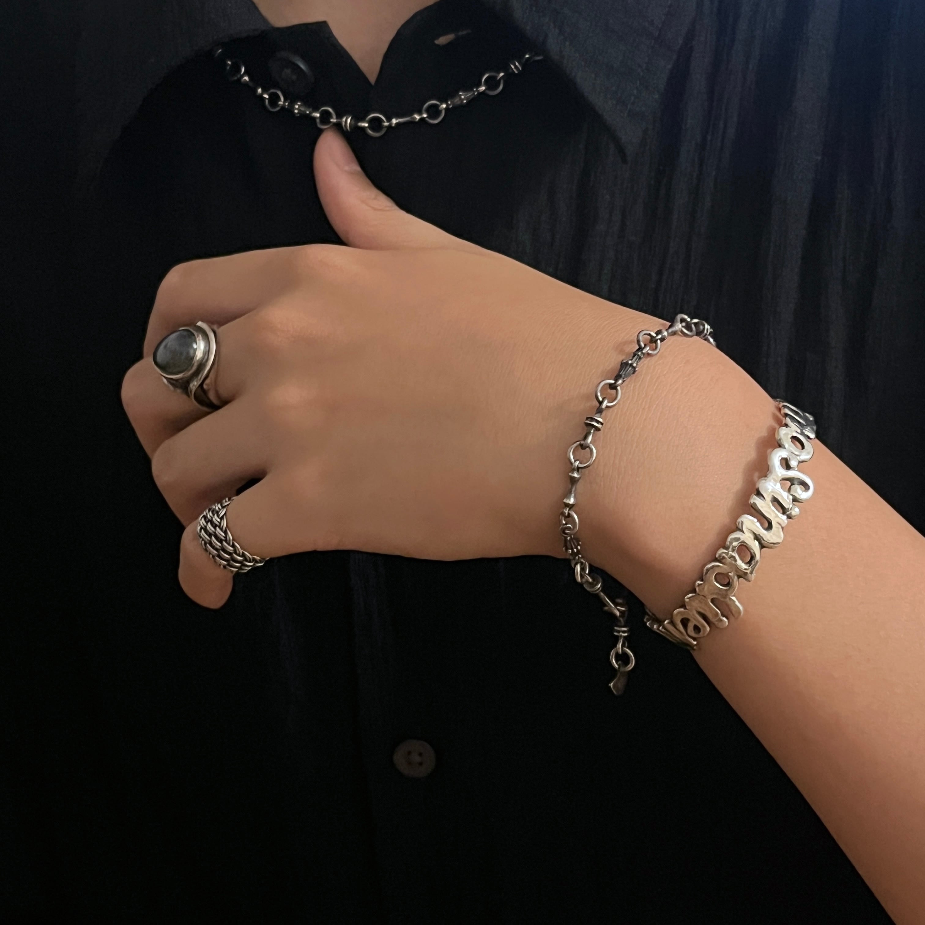ロンデル、シード、ボーン型の3つのオリジナルパーツを組み合わせたシルバー製チェーン。